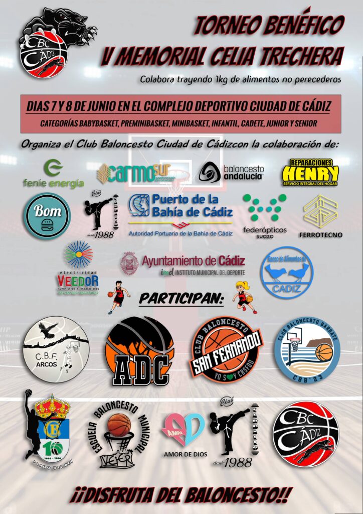Decir que nuestro V Memorial Celia Trechera tendrá un carácter benéfico en colaboración con el Banco de Alimentos de Cádiz, solicitándose a cada participante que aporte un kilo de alimentos no perecederos.